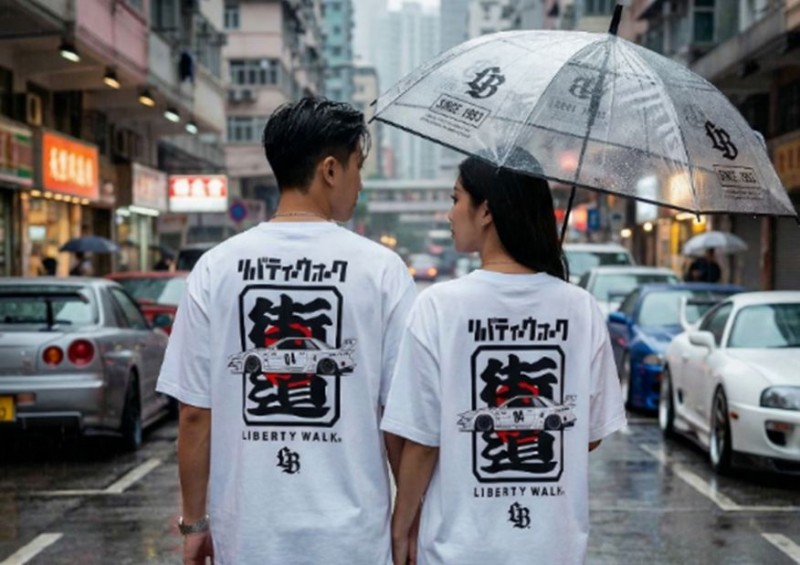 这款是最理想的入门首选。 以 Liberty Walk 经典 Logo T 恤为主轴,采用一黑一白的「太极」配色,象征情侣间的完美互补。 套装搭配 Liberty Walk 透明雨伞,实用与浪漫兼备。