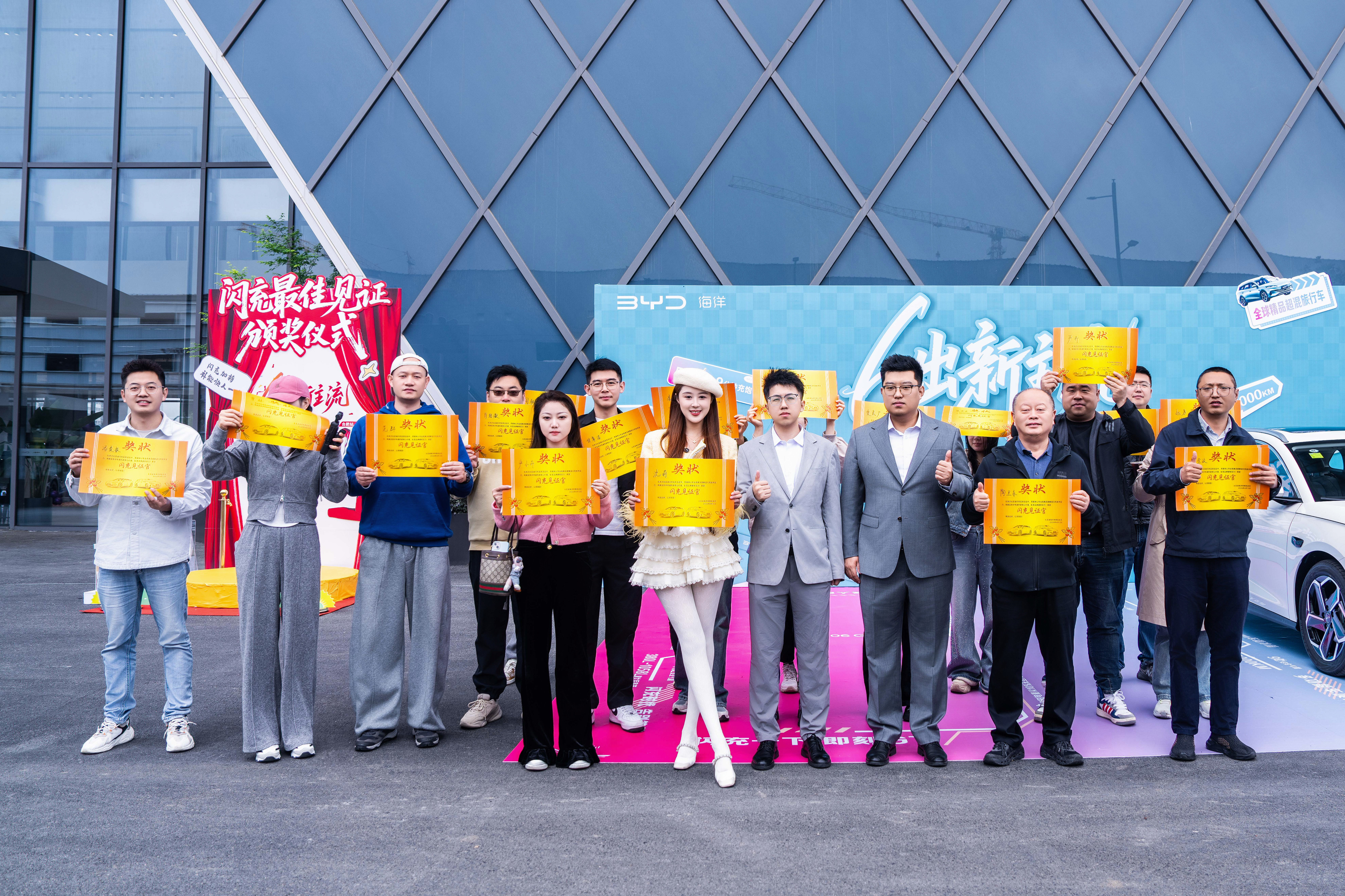 随后,比亚迪领导为所有参与实测的媒体颁发“闪充见证官”证书,感谢他们与海洋网共同见证闪充时代的到来。全体嘉宾合影留念,记录下这一美好时刻。