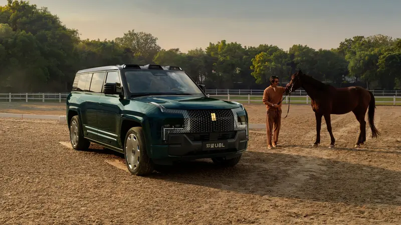 仰望U8L鼎藏版新增专属车色墨玉青,将碧玉色泽,融合在墨玉般雄浑的底蕴中。漆面配方经上百次调试,加入了微米级珠光晶体,在光线变化中,呈现丰盈的渐变效果,将东方玉石的温润质感与现代商务的沉稳气质融为一体。搭配甲骨文黄金车标与22英寸八孔锻造铝合金轮毂,呈现出“金玉相逢,行稳致远”的格调。